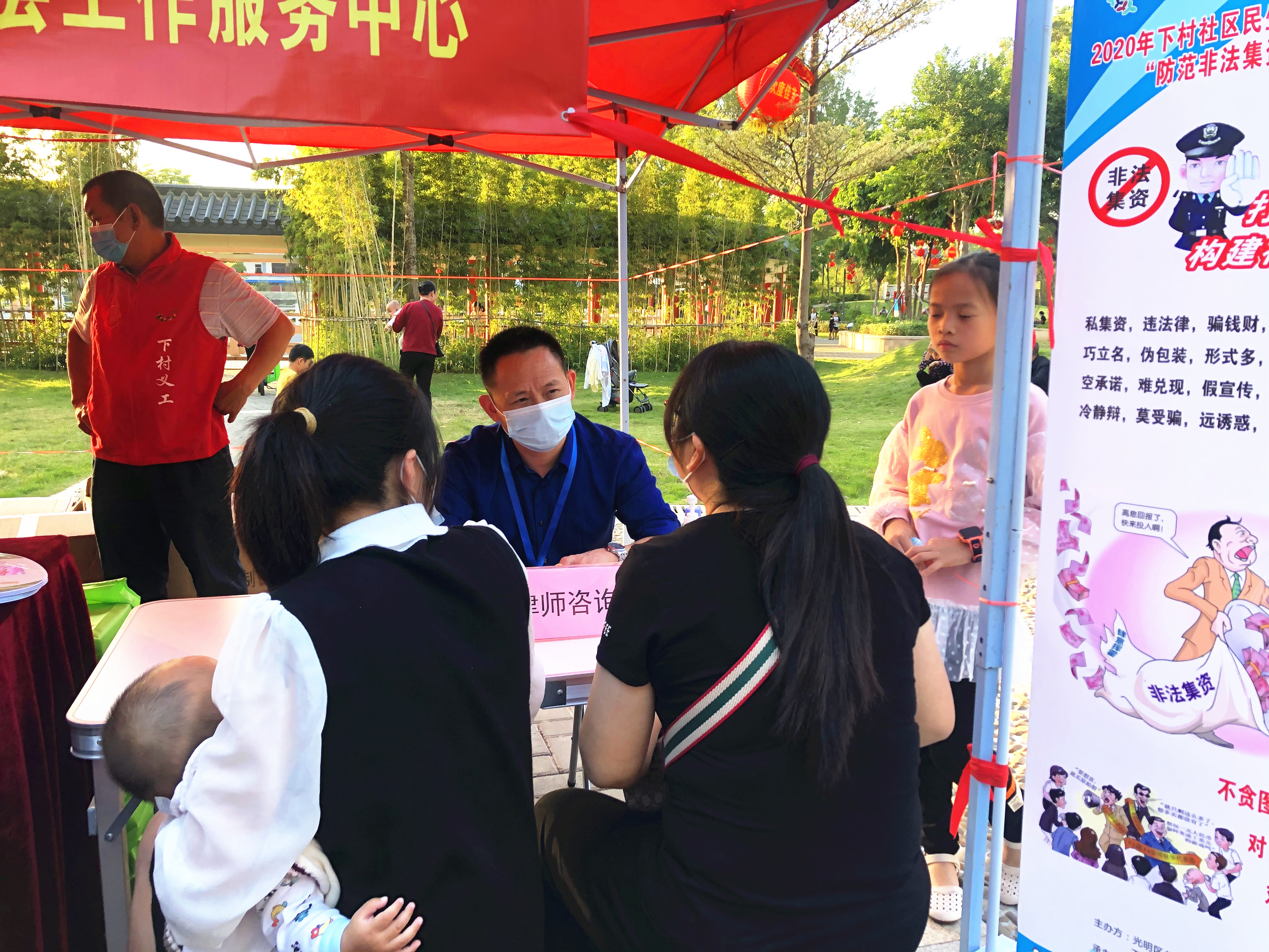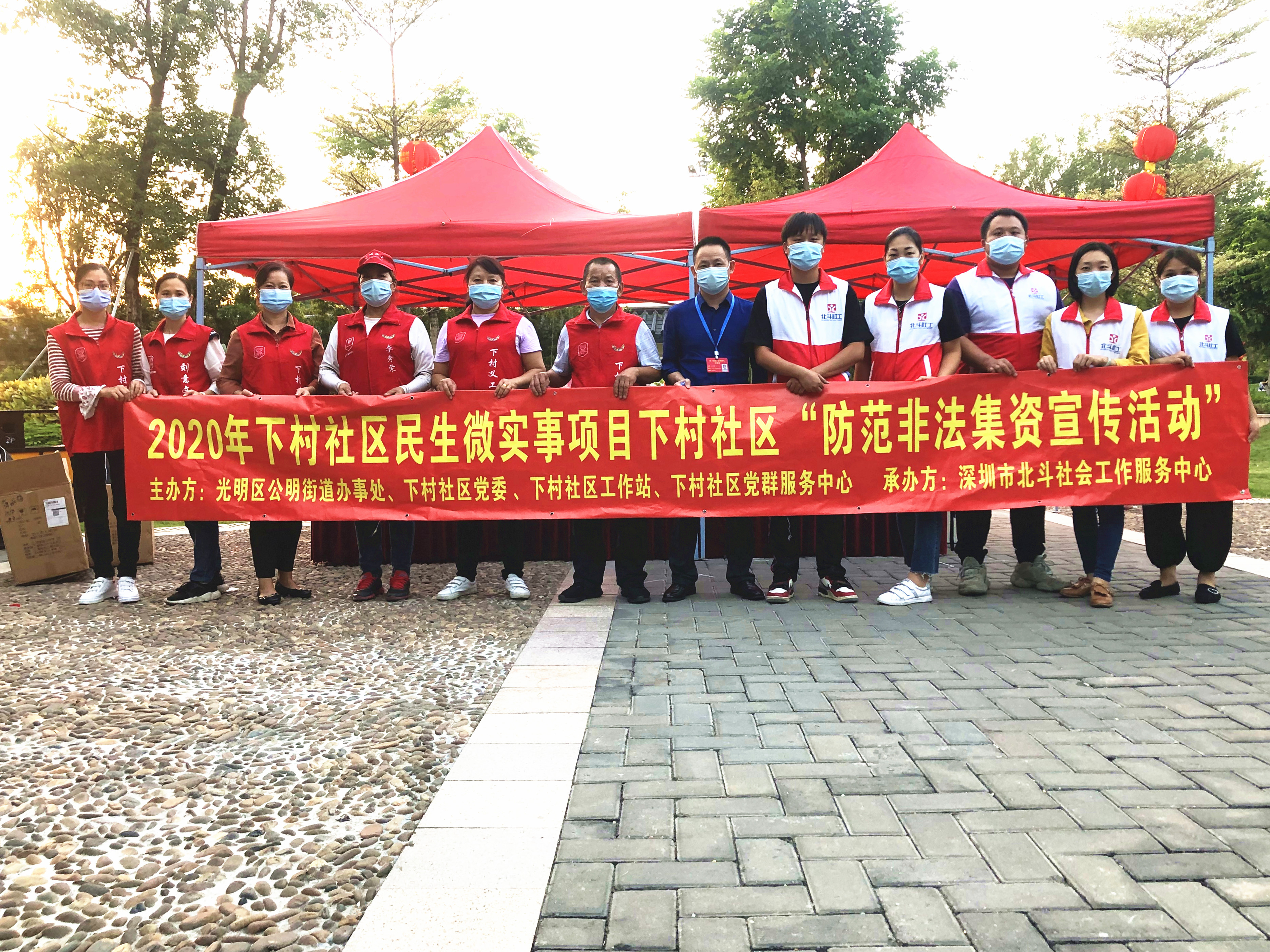 10月24、25日,由光明区公明街道办事处、下村社区党委、下村社区工作站、下村社区党群服务中心主办,深圳市北斗社会工作服务中心承办的2020年下村社区民生微实事项目下村社区“防范非法集资宣传活动”在下村公园举行。广东一米律师事务所黄明顺律师在现场为民众普及防范非法集资知识、接受市民群众相关法律咨询,有效提升民众识别和防范非法集资的能力,引导民众增强自我保护、理性投资的意识。 ![]()